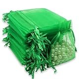 Leeyunbee 100PCS 7x9cm Bolsa de Organza Verde Oscuro, Bolsitas de Organza, Bolsas para Envoltura de Joyas, Bolsas de Organza de Regalo con Cordón para Boda Favores Joyas y Dulce