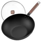 - 【Antiadherente】En comparación con la sartén recubierta, la superficie de este wok de acero al carbono ha sido pre-tratada con nitrógeno a más de 1000F, lo que lo hace antiadherente,...