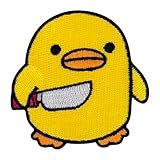 VAEIORP Parche bordado «Pato enfadado con cuchillo» – 5,4 × 5,2 cm, autoadhesivo