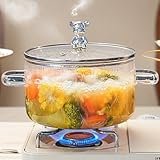 1.5L Olla de Vidrio para Cocinar, Olla de cristal, Batería de cocina de vidrio borosilicato resistente al calor, Sartén con Tapa Cubierta, Doble Asa