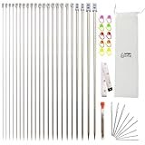 - 11 pares de agujas de tejer de 35 cm: cada par de agujas de metal mide 35 cm de largo, la longitud más larga hace que sea cómoda de sostener y trabajar. Y el tamaño de las agujas de tejer está...